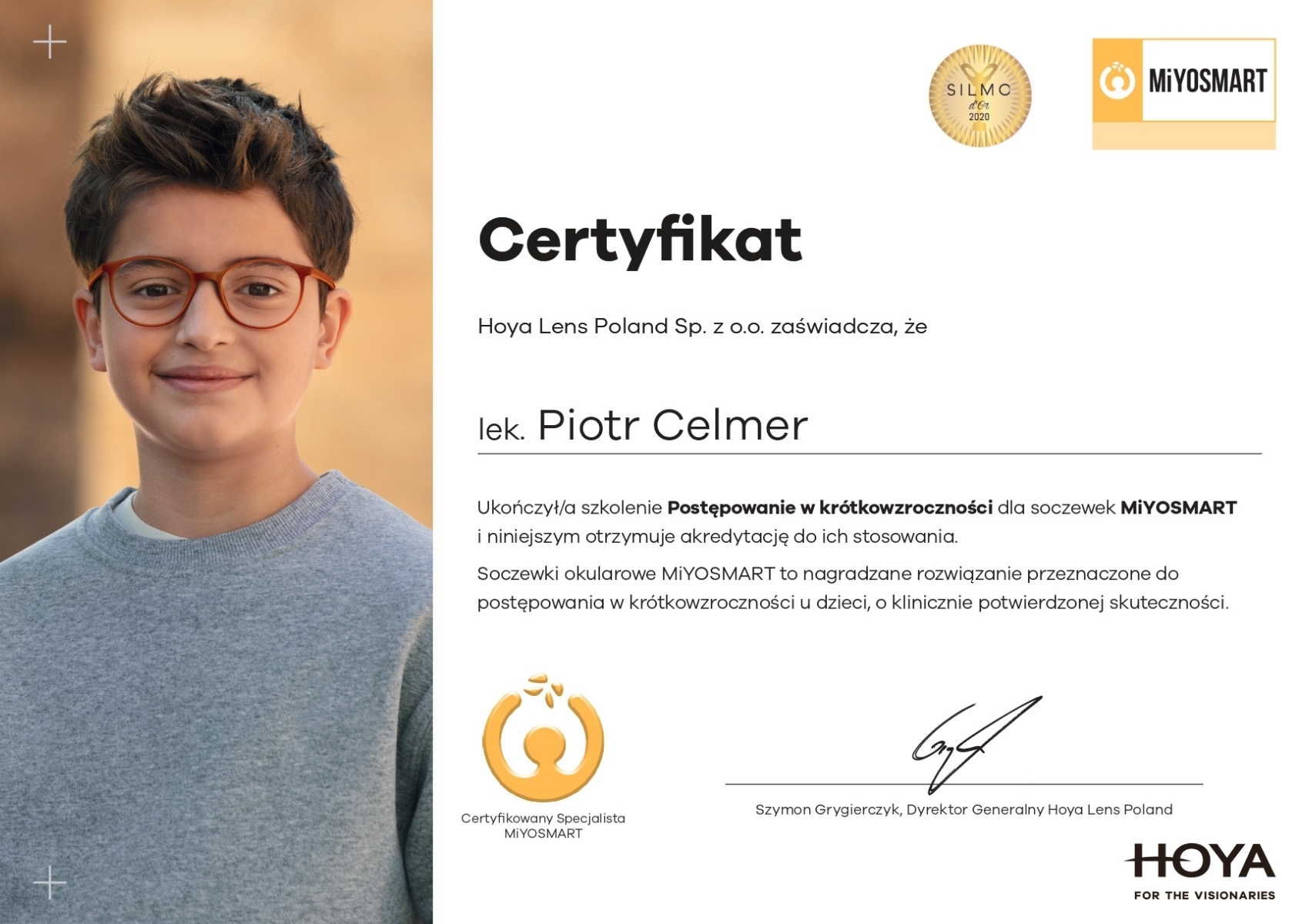 Wykonuję zabiegi YAG kapsulotomii i YAG irydotomii. Posiadam certyfikat MiYOSMART
